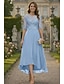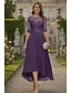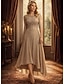 Linha A Cauda Escova Vestido de convidada de casamento Vestido formal Vestido de noite Vestido Para Mãe dos Noivos Manga Curta Ilusão Decote Elegante Tamanhos Grandes Festa Convidado do casamento