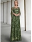 Linha A Tubinho Longo Bordado com miçangas Vestido de convidada de casamento Vestido formal Vestido Para Mãe dos Noivos Manga 3/4 Decote V Colarinho de Camisa Elegante Vintage Luxuoso Formal Cetim com