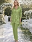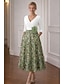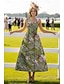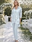 Linha A Longo Camisetão Vestido de convidada de casamento Vestido formal Vestido Para Mãe dos Noivos Manga Longa Colarinho de Camisa Elegante Vintage Casamento Formal Fibra Sintética com Estampa