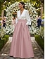 Linha A Tubinho Longo Vestido de convidada de casamento Vestido formal Vestido de noite Vestido Para Mãe dos Noivos Manga 3/4 Decote V Elegante Formal Convidado do casamento Semi formal Cetim com