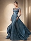 Sereia Cauda Escova Vestido de convidada de casamento Vestido formal Vestido de noite Vestido Para Mãe dos Noivos Manga Longa Decorado com Bijuteria Elegante Convidado do casamento Noite Formal Cetim