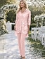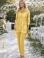 Macacão Vestido Comprimento Chão Vestido da Mãe da Noiva Manga Longa Decote em V Elegante Convidada de Casamento com Pregas Cor Sólida