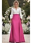 Linha A Até o Tornozelo Vestido de festa Vestido Coquetel Vestido de convidada de casamento Vestido Para Mãe dos Noivos Manga Longa Ombro a Ombro Elegante Formal Cetim com Detalhes em Pérolas