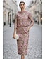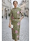 Tubinho Terno de vestido Até o Tornozelo Vestido de festa Vestido Coquetel Vestido de convidada de casamento Vestido Para Mãe dos Noivos Manga 3/4 Decote Canoa Elegante Vintage Formal Convidado do
