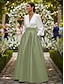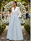Linha A Longo Vestido de convidada de casamento Vestido formal Vestido de noite Vestido Para Mãe dos Noivos Manga Longa Decote V Elegante Split alta Formal Convidado do casamento Cetim com Faixa