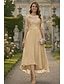 Linha A Tubinho Longo Bordado com miçangas Vestido de convidada de casamento Vestido formal Vestido Para Mãe dos Noivos Sem Manga Assimétrico Elegante Vintage Luxuoso Formal Cetim com Laço(s) Apliques