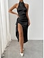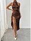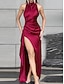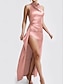Mulheres Vestido midi vestido de cetim Vestido de festa Moda quente Moderno Ao ar livre Férias Festa Delgado Tecido Sem Manga Halter pescoço Preto Rosa Vinho Marron Verão Primavera