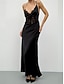 Mulheres Minivestido Vestido preto Vestido de lantejoulas Vestido de festa Vestido Coquetel Moda Festa quente Roupa de inverno Férias Convidado do casamento Delgado Cor imaculada Sem Manga Com Alças