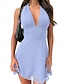 Mulheres Minivestido Vestido Boho Minivestido Vestido ocidental Moda quente Moderno Diário Férias Para Noite Normal Tecido Sem Manga Decote V Azul Verão Primavera