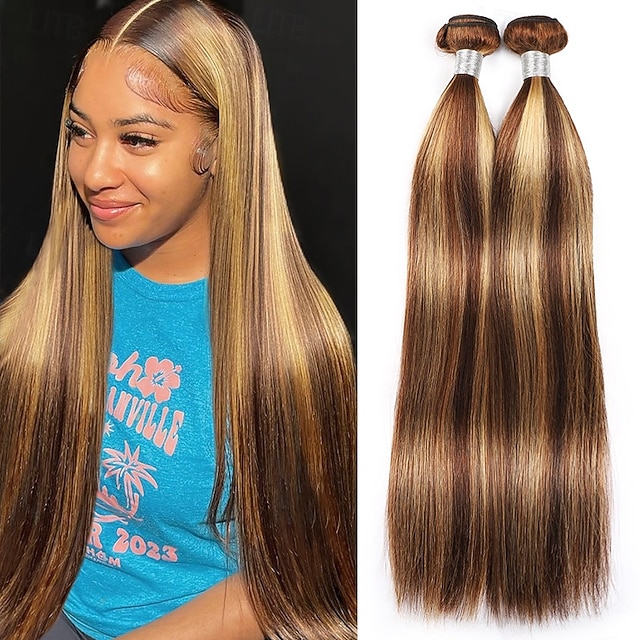 2 pacotes de cabelo humano com mechas p4/27, cabelo liso, 30-70 cm (12-28 polegadas)#18074232