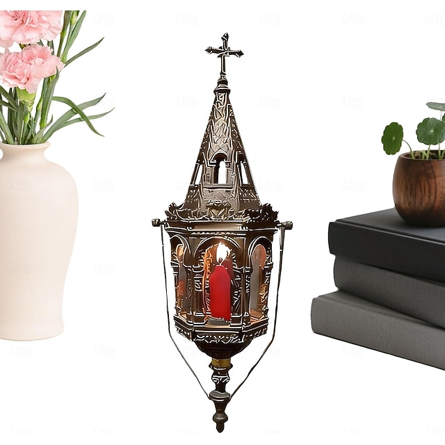 Lanterna suspensa antiga do século XIX, castiçal gótico vintage, para interiores. &Suporte de vela suspenso para exterior, iluminação decorativa para quartos e corredores com estilo rústico gótico.#11181696