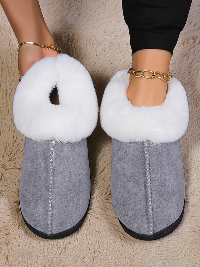 Pantufas femininas forradas com lã quente e gola de pele sintética, calçados confortáveis e antiderrapantes para ambientes internos, pantufas de inverno estilosas para mulheres &conforto de férias#11731022