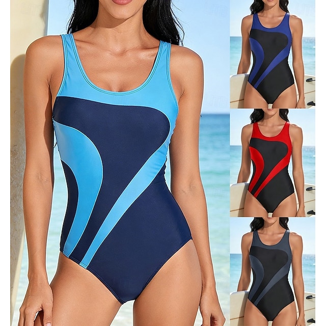 Mulheres Roupa de banho Maiôs One Pieces Bloqueio de cores Elástico Sem Manga Roupa de Banho Surfe Snorkeling Natação Verão#12190774