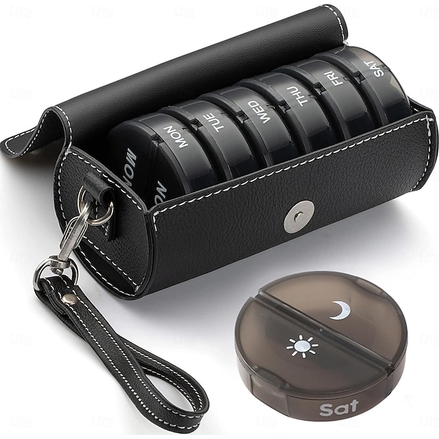 Organizador de comprimidos semanal para 2 doses diárias com estojo em couro PU, caixa organizadora de comprimidos para 7 dias, ideal para viagens - dispensador portátil de comprimidos AM/PM para#12597319