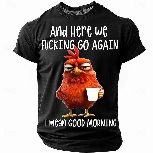 Camiseta Gráfica Masculina Galinha Grumpy Engraçada 'Aqui Vamos Nós De Novo Quero Dizer Bom Dia' Humor de Estilo de Vida#12726091