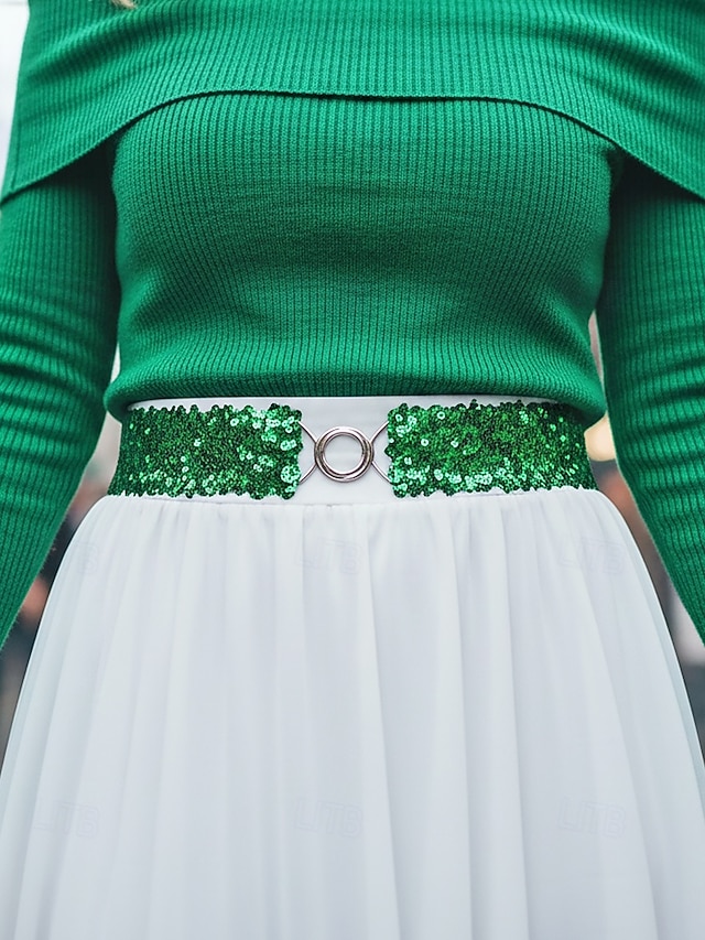 Cinto feminino de lantejoulas, em poliéster elástico, disponível em várias cores, perfeito para o Dia de São Patrício, carnaval e uso diário. #13312210