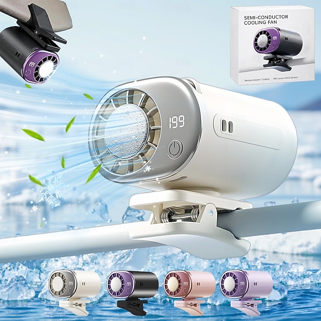 Ventilador de ar condicionado automotivo de encaixe, modelo 2026, com chips de resfriamento semicondutores de 16°C, 199 velocidades ajustáveis e display de LED. &Ventilador portátil com rotação de#13804889