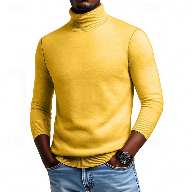 Homens Suéter Pulôver suéter Suéter de malha Estriado Tricotar Tops regulares Tricotado Tecido Gola Alta Moda Roupa de rua Casual Roupa Diária Roupa Outono Inverno Camelo Vinho S M L#13924872