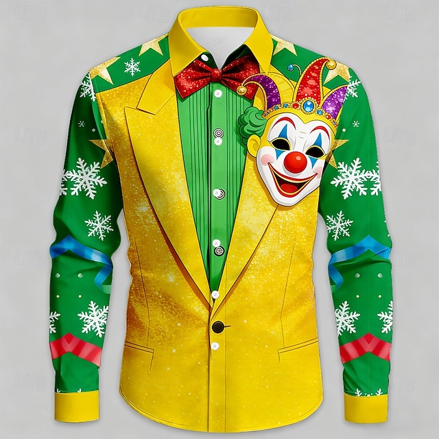 Carnaval Homens Palhaço Carnaval Design de gola falsa e terno Camisa Social camisa de botão Manga Longa Moda Casual Festa Feriado Primavera Outono Aberto para a Lateral Impressão 3D camisas de #14979156