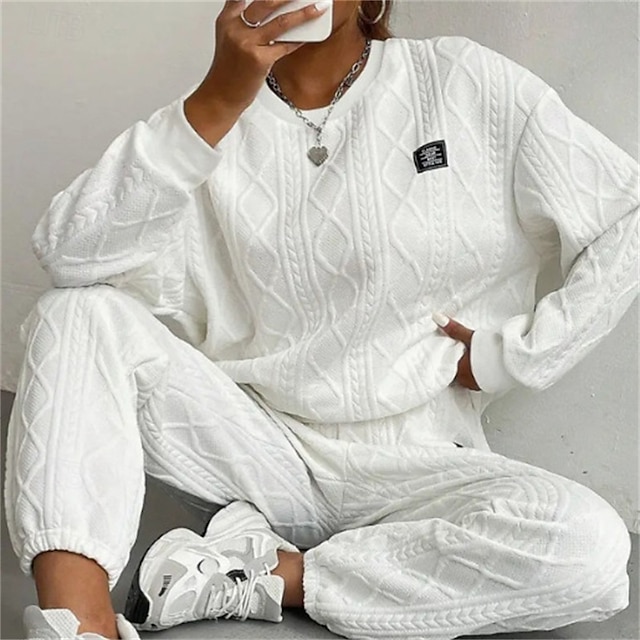 Mulheres Moletom Suéter Conjunto de Roupa Atlética Bolsos Cor Sólida Conjuntos Outono Inverno Preto Branco Academia Exercite-se Esportivo Térmico / Quente A Prova de Vento Macio Manga Longa Esporte#15372487
