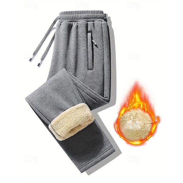 Homens Sherpa Calças de lã Calças de inverno Calças Calça de moletom de perna reta Bolsos Com Cordão Cintura elástica Tecido Conforto Quente Esportes Diário Moda Casual Preto Cinzento Micro-Elástica #17150767