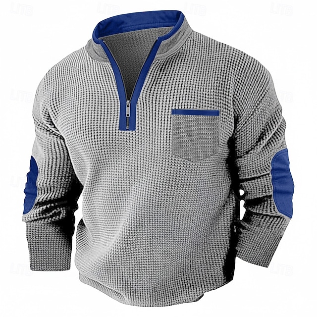 Homens Camiseta Waffle Camiseta Camisa Waffle Henley Manga Longa Meio Zíper Outono Outono & inverno Côr Sólida Retalhos Tradicional / Vintage Casual Patchwork Bloco de cor Casual Casa Ao ar livre#17787870