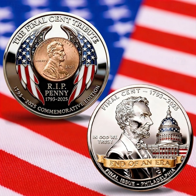 O último centavo 1793–2025 · Fim de uma era · Moeda comemorativa de metal Lincoln · Moeda memorial do último centavo 1909–2025 · Último centavo Lincoln · Ficha comemorativa, tributo histórico de#17932420