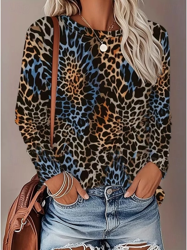 Mulheres Camiseta Imprimir Gráfico Geométrica Abstrato Vintage Moda à moda Manga Longa Gola Redonda Tops regulares Diário Azul Vermelho Roxo Fúcsia Marron Verão Primavera #18316740