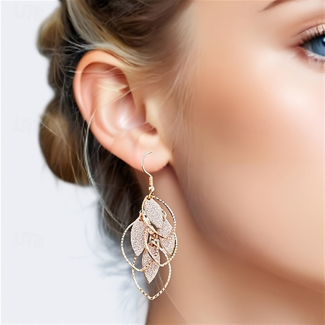 1 par Brinco For Mulheres Rua Diário Encontro Liga Vazado Formato de Folha#18477220