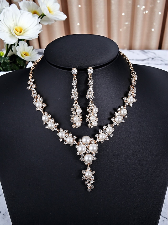 Conjunto de colar e brincos de pérolas e strass feminino, joias vintage elegantes para bailes de gatsby, casamentos &festas noturnas#19042042