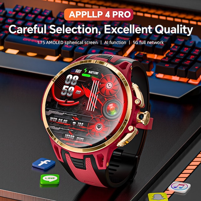 Relógio inteligente Lokmat Appllp 4 Pro de 1,75 polegadas com 4G LTE, pedômetro, lembrete de chamadas, monitor de sono, compatível com Android e iOS, unissex, GPS, IPX-1, caixa de 50 mm. #19235391