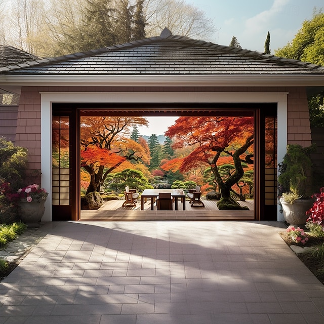 Tampa da porta da garagem Grande pendurado 森林 Rústico 3D De Festa Exterior Fundos de fotografia Porta de Entrada Decorações de parede de porta de fundo#19349010