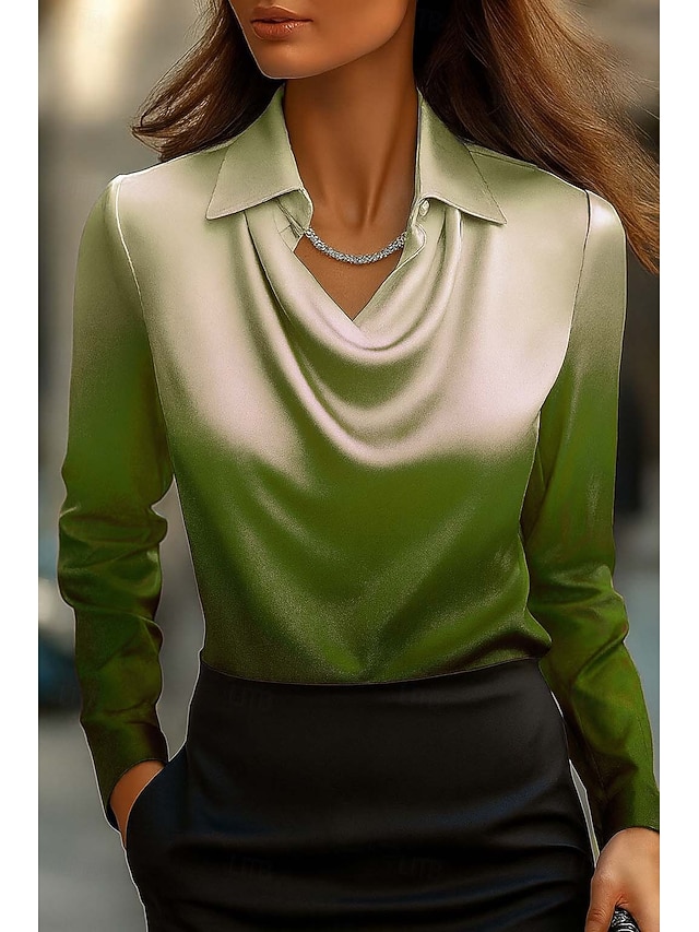 Mulheres Camisa Social Franzido Com Pregas Âmbar Gráfico Geométrica Elegante à moda Básico Manga Longa Gola Boba Tops regulares Diário Trabalho Traje de festa para noite Verde Verde Claro Verde#19979997