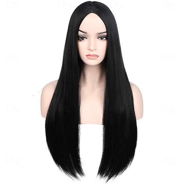 Peruca de Fantasia para Mulheres Cabelo Preto Longo e Liso Perucas Naturais para Cosplay Halloween#9290879