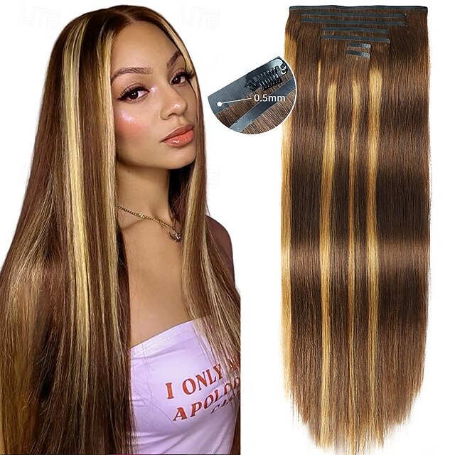 Destaque p4/27 20-24 polegadas cabelo liso longo 7 peças conjunto pu grosso clipe em extensões de cabelo#15225982