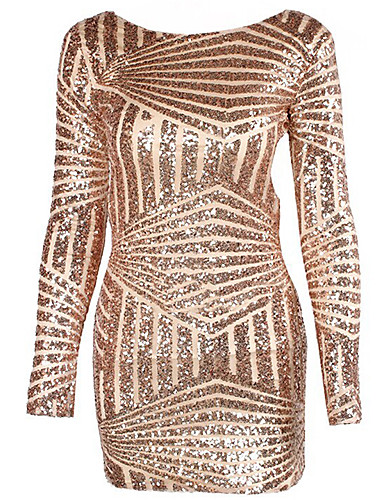 Feminino Bandagem Vestido,Bandagem Sensual Listrado Decote Redondo Mini Manga Longa Vermelho / Preto / Dourado Algodão / Elastano Verão #03013593