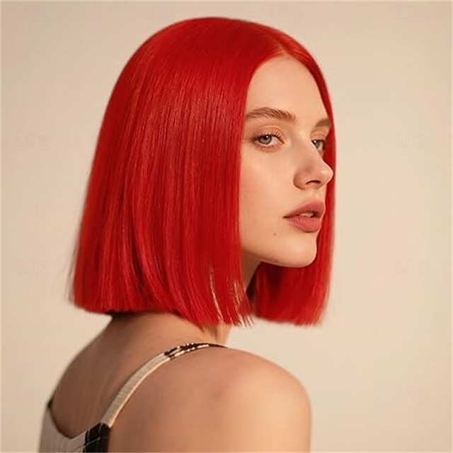 Peruca de Carnaval 2026 Rosa Vermelho Preta Liso Bob Curto Peruca sintética para festivais Mardi Gras Parada Cabelo para fantasia de cosplay para Feminino #19489053