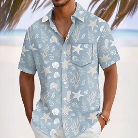 Homens Camisa de linho camisa de verão Roupa de Praia camisa de botão Tecido Férias Curise Preto Branco Verde Claro Rosa Manga Curta Aberto para a Lateral Verão Roupa