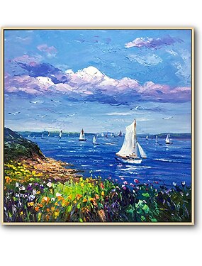 Pintura a óleo 100% arte de parede pintada à mão artesanal em tela ondas abstratas quadradas paisagem clássico moderno decoração de casa decoração lona enrolada sem moldura não esticada