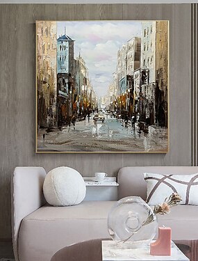 Mintura artesanal cidade paisagem pinturas a óleo sobre tela arte de parede decoração moderna imagem abstrata para decoração de casa rolou sem moldura pintura não esticada