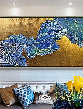 Pintura a óleo artesanal em tela decoração de arte de parede original folha de ouro pintura de lótus pintura de flor abstrata para decoração de casa com moldura esticada/sem pintura de moldura interna