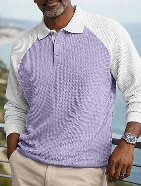 Homens Camisas Polo Waffle Ao ar livre Casual Lapela Manga Longa Moda Moderno Côr Sólida Tricotado Primavera & Outono Todas as Estações Ajuste Largo Preto Azul Marinha Roxo Cinzento Azul Claro