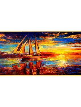 Pintura a óleo artesanal arte da parede da lona decoração paisagem brilhante pôr do sol reflexão veleiro seascape para decoração de casa rolado sem moldura pintura não esticada