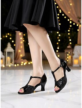 Sapatos de dança latina femininos pretos - salto médio, modelo com tira em T, para dança de salão, salsa, tango e prática. &calçado de desempenho