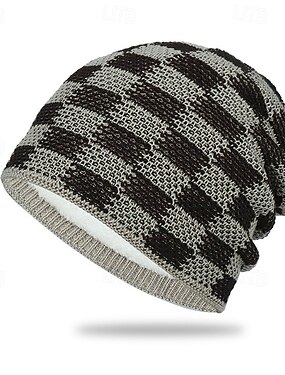 Homens Unisexo Gorro Chapéus de inverno Gorros Chapéu de malha Gorro de inverno Preto Caqui Poliéster Tricotado Respirável Aconchegante Roupa Diária Para Noite Xadrez A Prova de Vento Quente