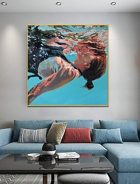 pintura a óleo artesanal lona decoração da arte da parede moderno abstrato subaquático retrato de uma menina nadando decoração do quarto de casa rolou pintura não esticada sem moldura