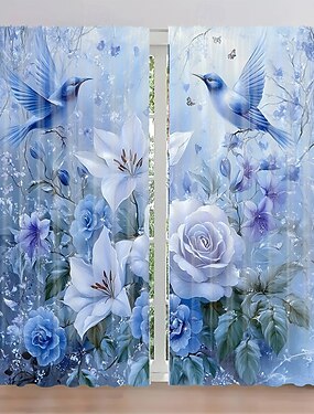 Conjunto de 2 cortinas com estampa floral e de plantas, em poliéster com bolso para varão, cortinas com estampa botânica verde para sala de estar, quarto, cozinha, decoração de dormitório e decoração