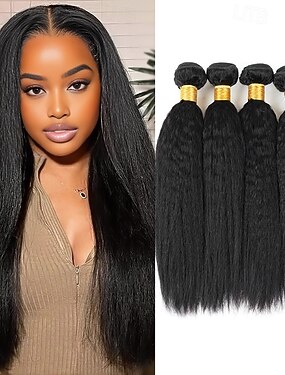 Yaki pacotes de cabelo humano liso de 10 a 30 polegadas, 4 pacotes de extensões de cabelo humano brasileiro preto natural para mulheres