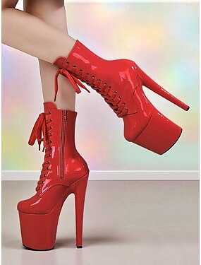 Botas femininas de couro envernizado vermelho com cadarço e plataforma - botas de palco sensuais com salto agulha alto para artistas e casas noturnas &roupas de festival