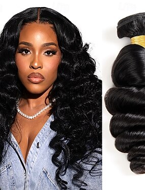 Cabelo humano brasileiro 1B # cor preta natural, ondulado solto, 1 pacote de 10 a 30 polegadas
